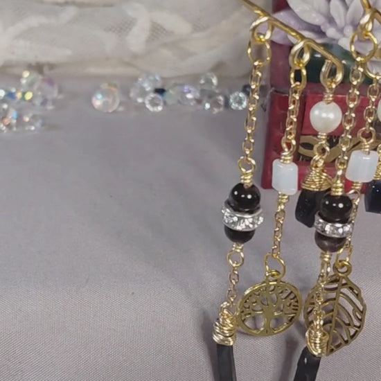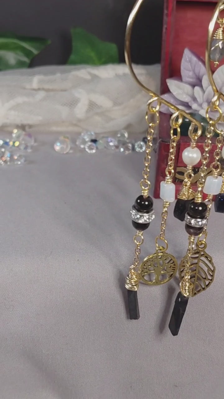 ⚖️ 🥀This particular pair of cascading ear cuffs tells a story of beauty and balance, with a unique, three-tiered design that features a captivating blend of natural stones, each with its own energy and meaning.