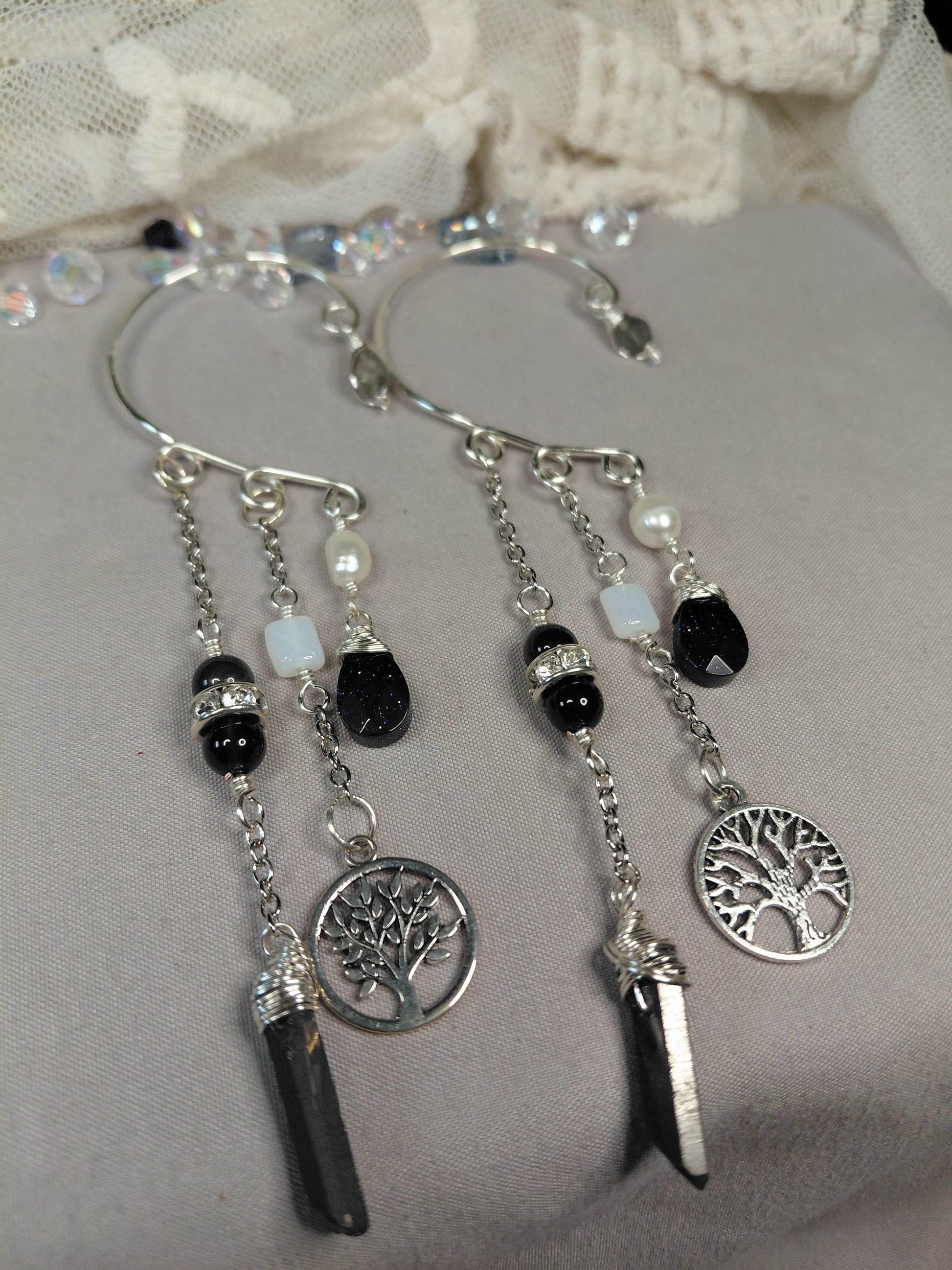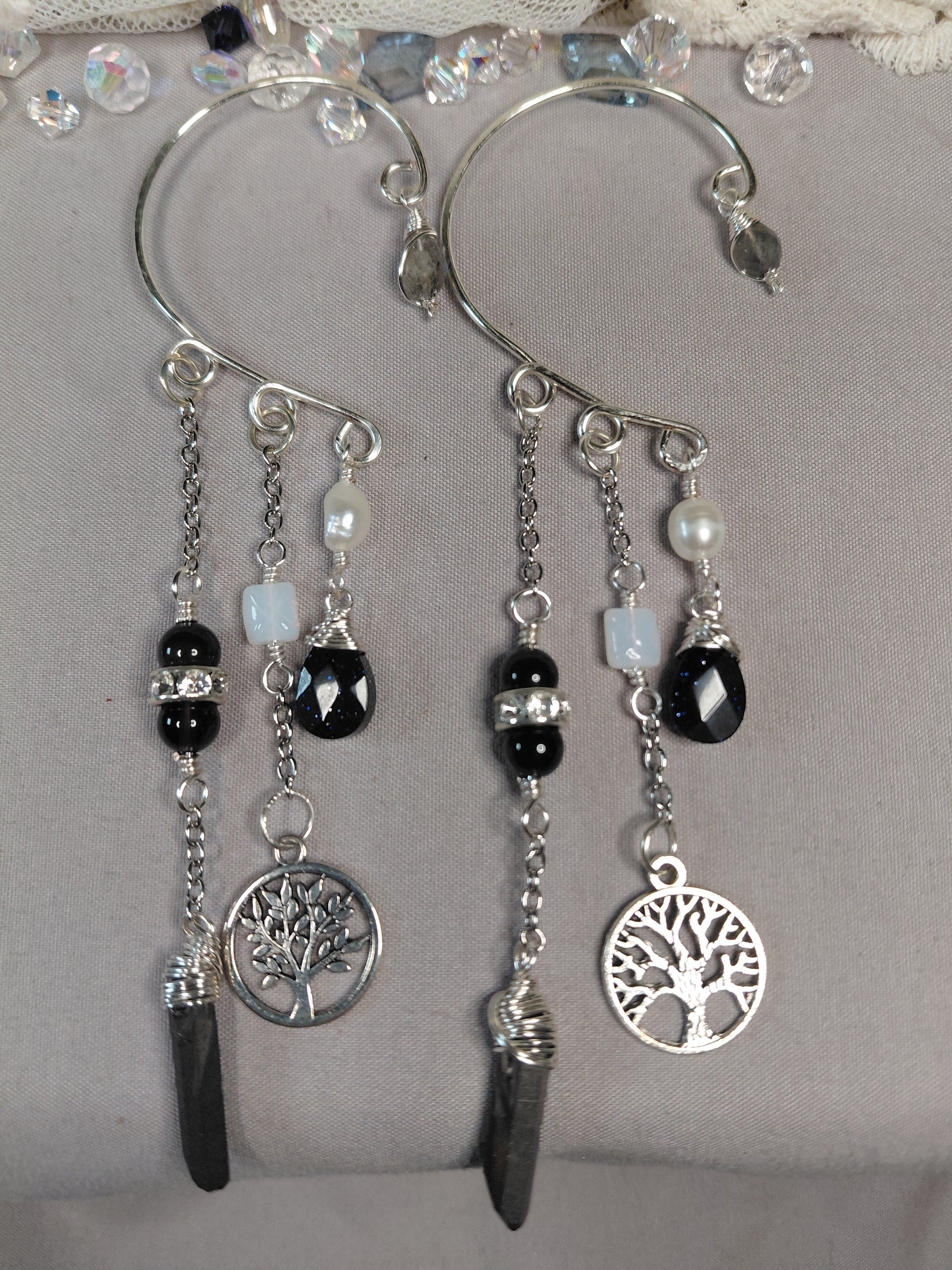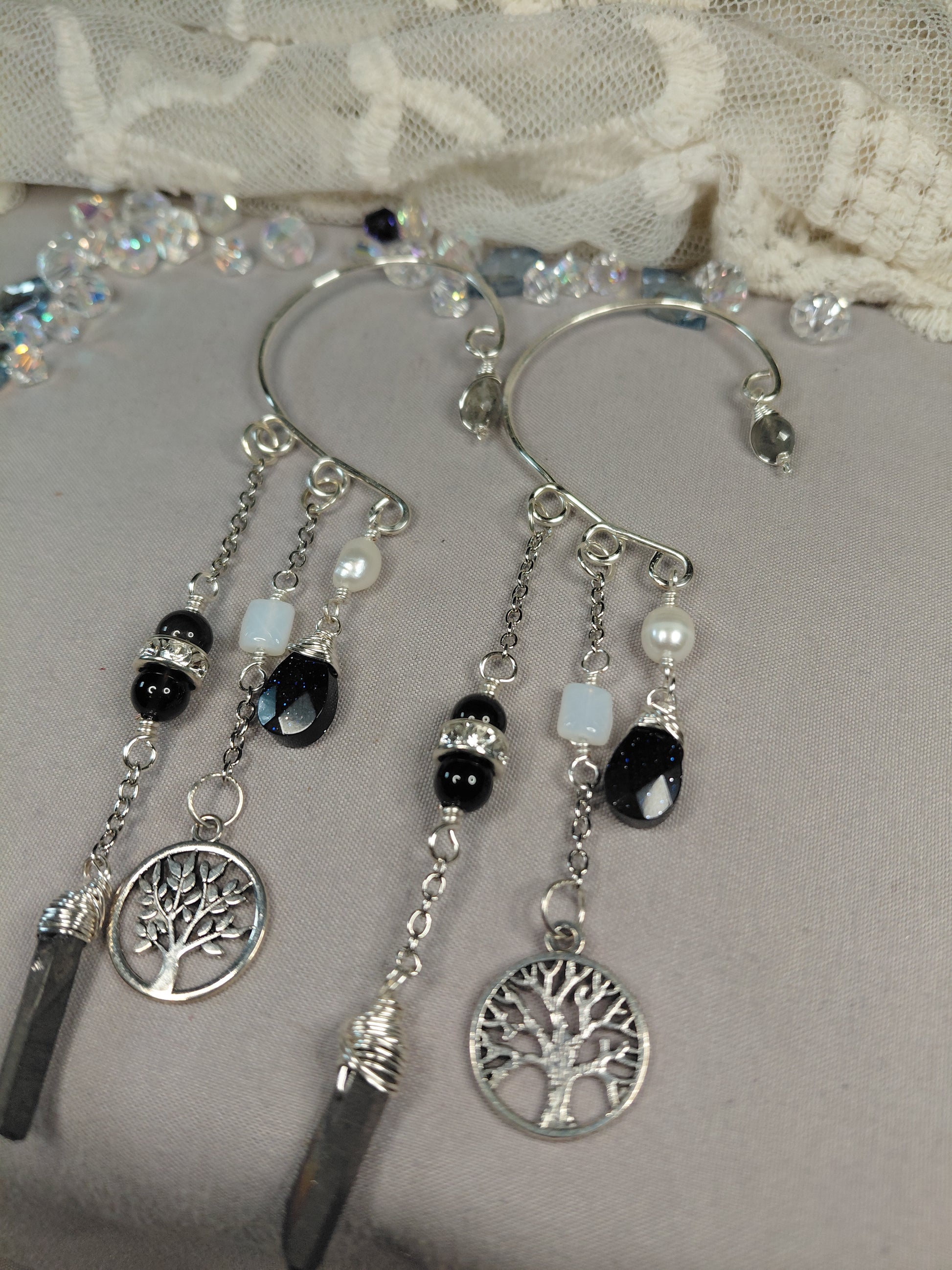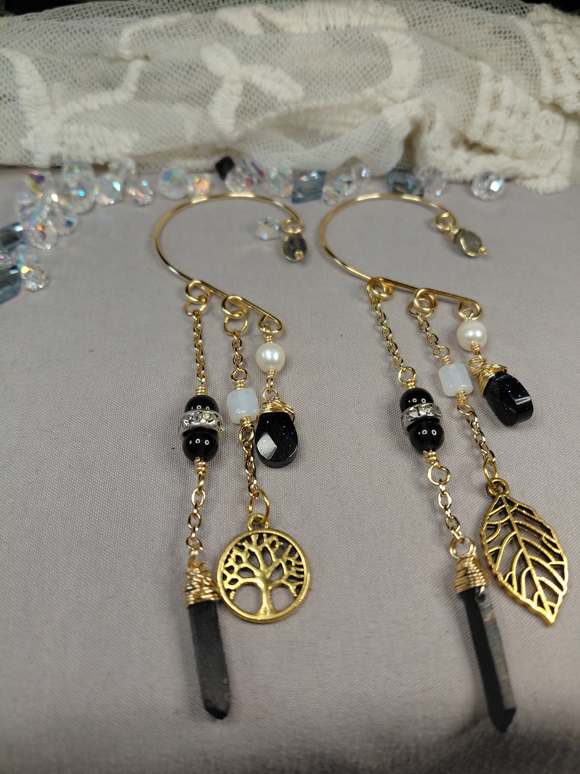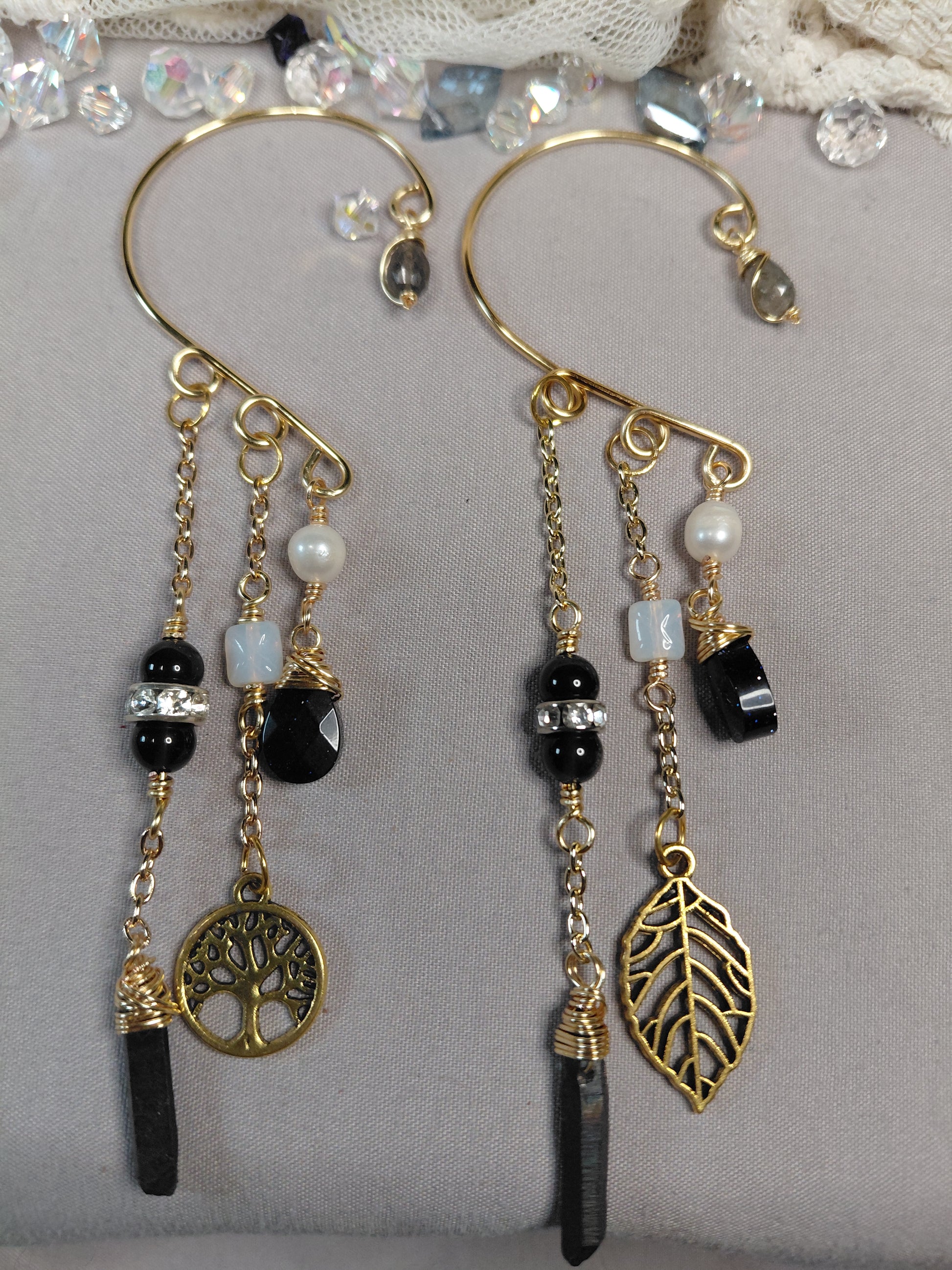 🌟This piece is more than just jewelry; it's a wearable journey. Each stone and charm has been thoughtfully chosen to create a harmonious flow of positive energy, making these ear cuffs the perfect statement piece for those who seek both style and spiritual connection.🌟