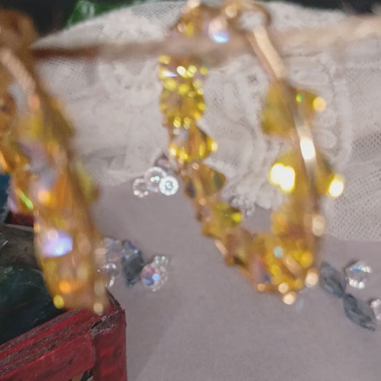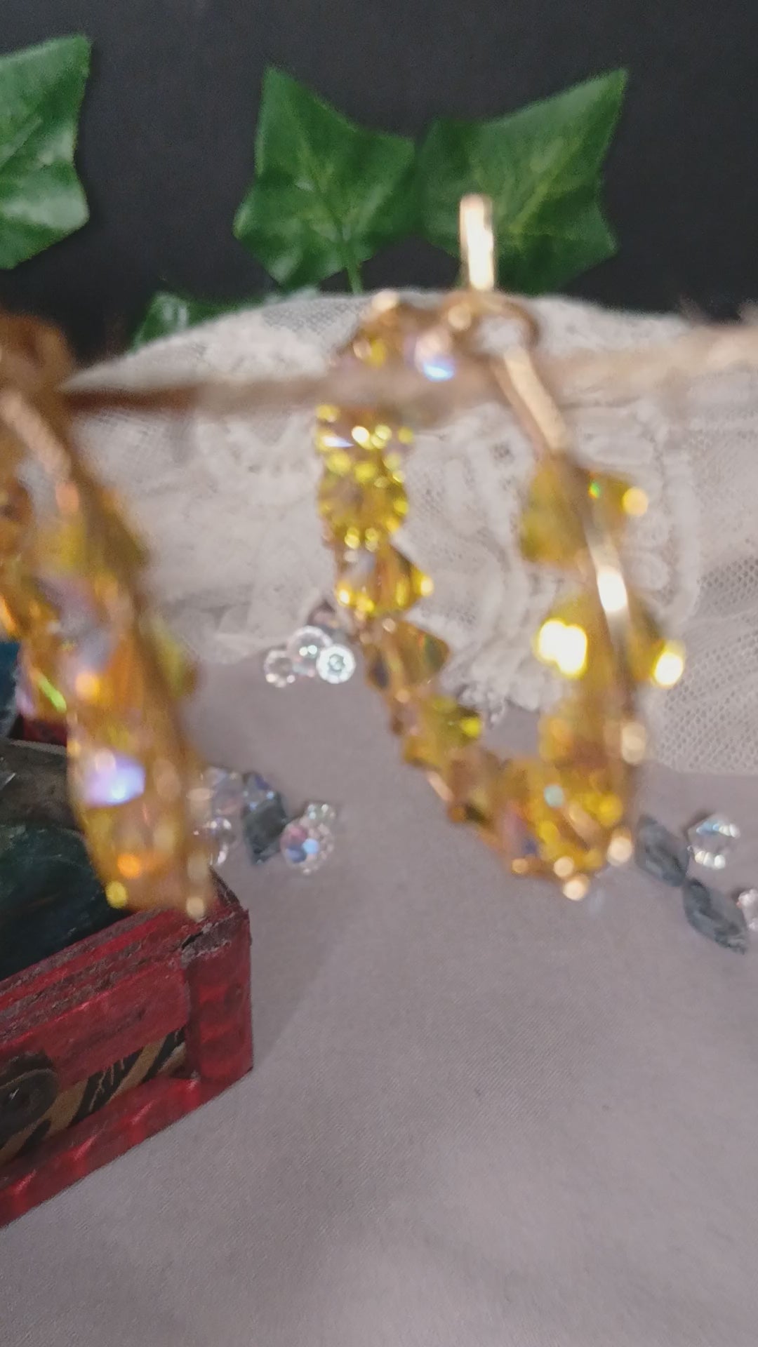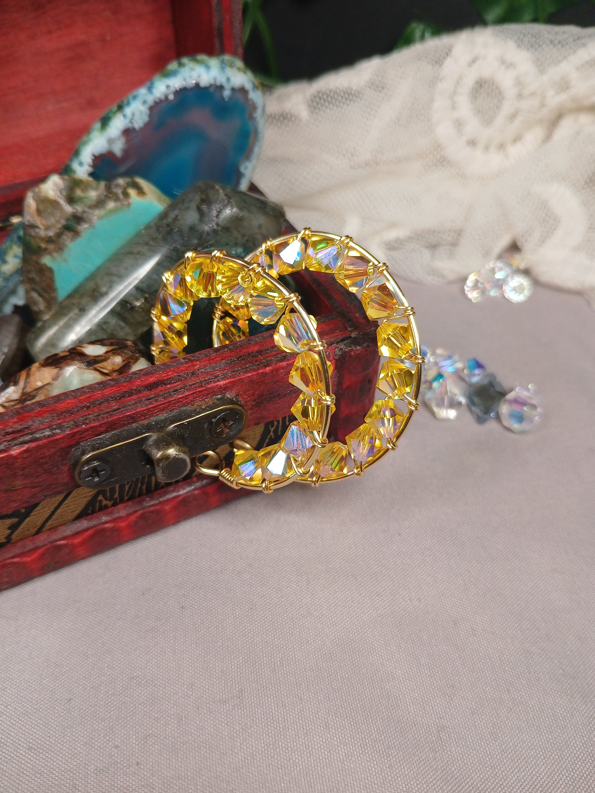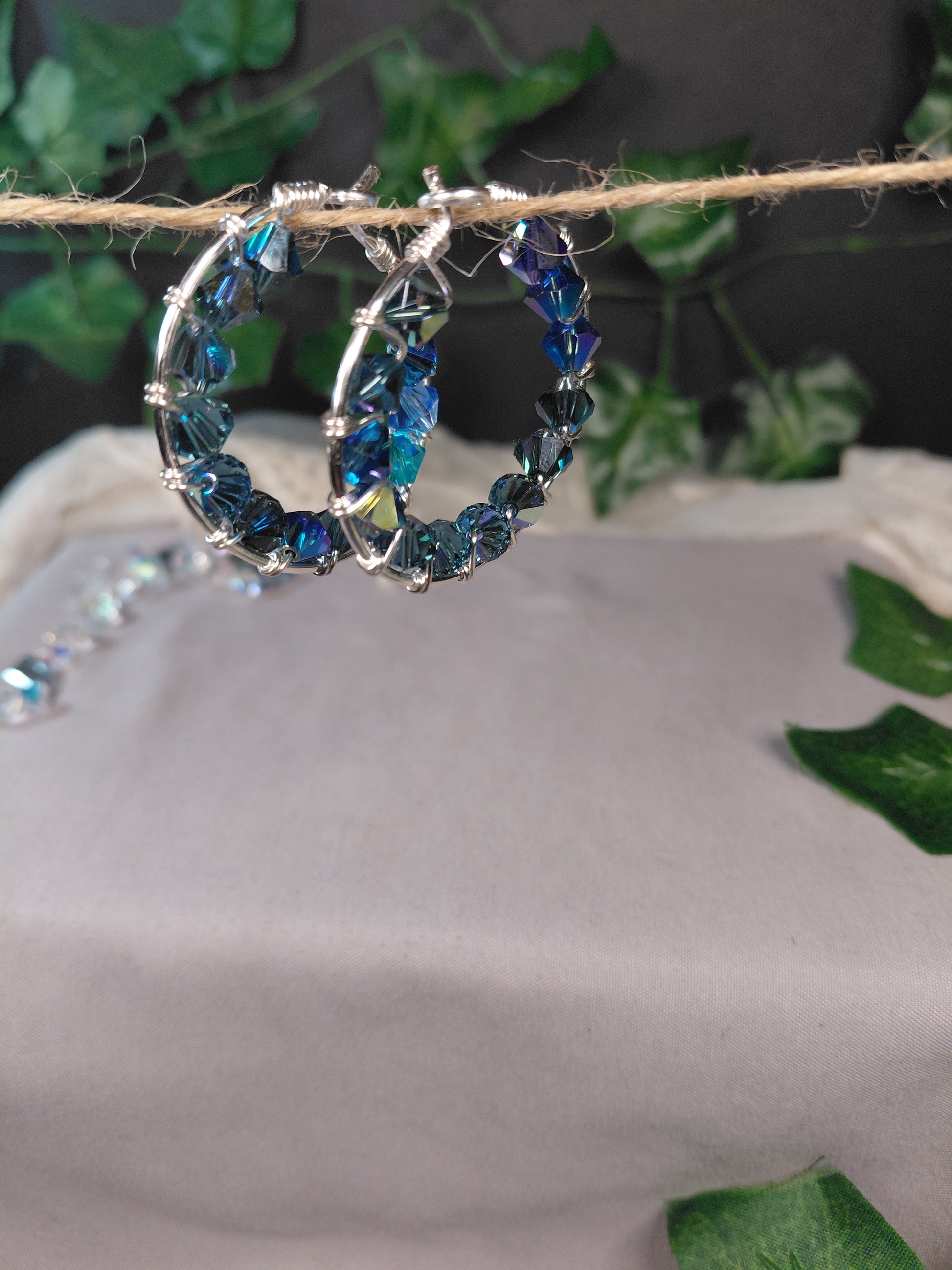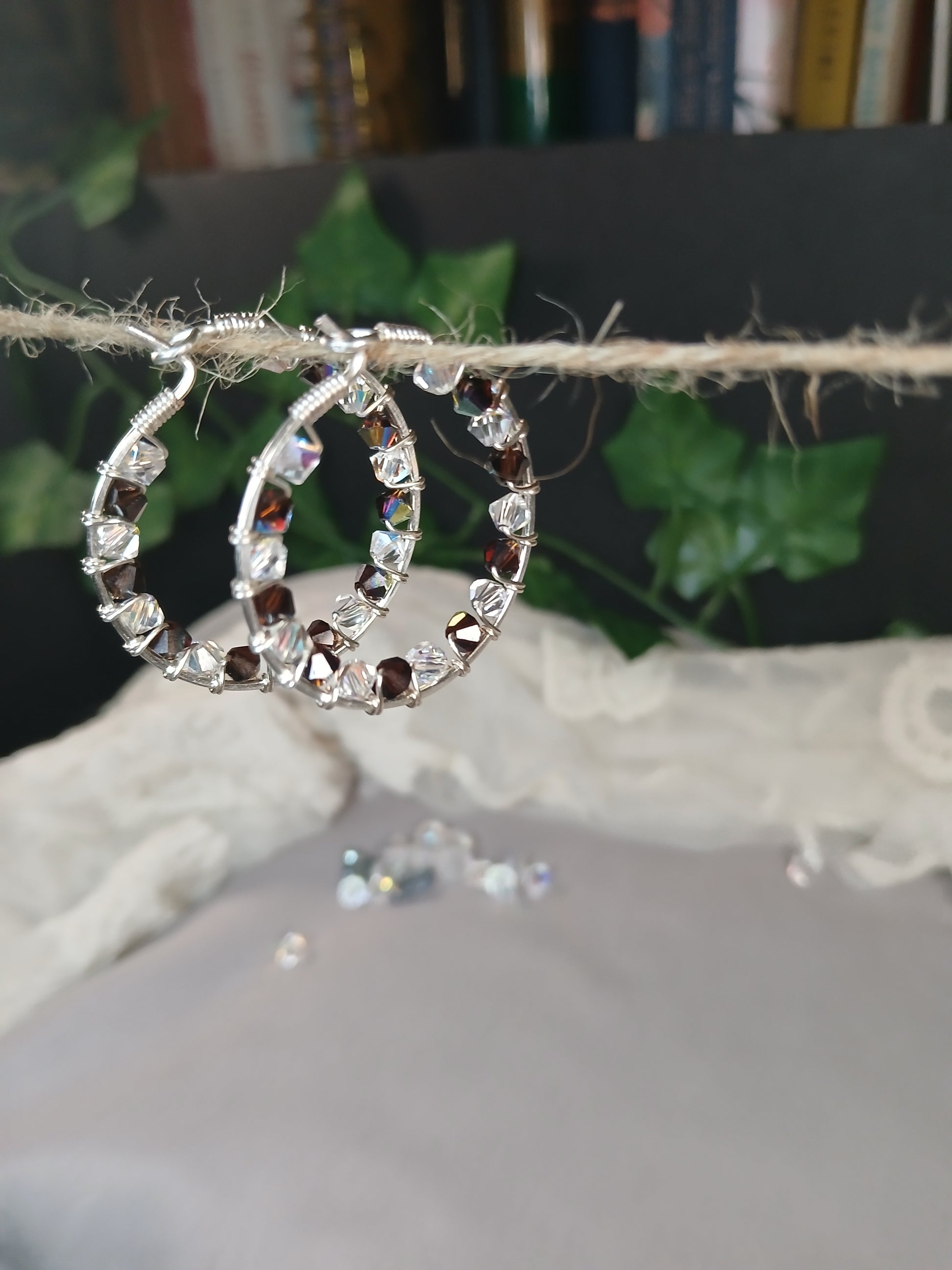 Make a dazzling statement with our mid sized silver or gold plated copper wire wrapped hoop earrings. Crafted with precision, these copper wire hoops have a burst of vibrant brilliance that comes from the high quality austrian crystals nestled within the wrapping. They offer an eye-catching shimmer with every movement. These earrings blend modern design with timeless sparkle, making them an ideal accessory for those who appreciate understated luxury and captivating detail.